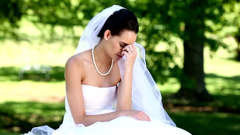Upset bride crying on a sunny day